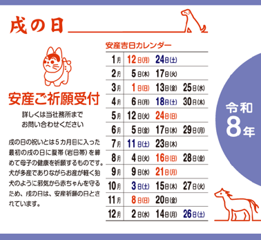 戌の日以外でご利用になりたい場合は、社務所までお声かけください。