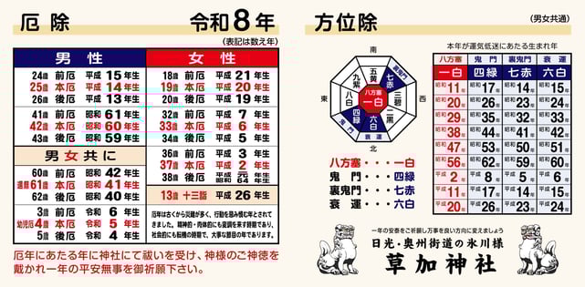 厄年を迎える男性42歳、女性33歳は特に「大厄」と云われ3年間を忌み慎しむ習わしがあります。